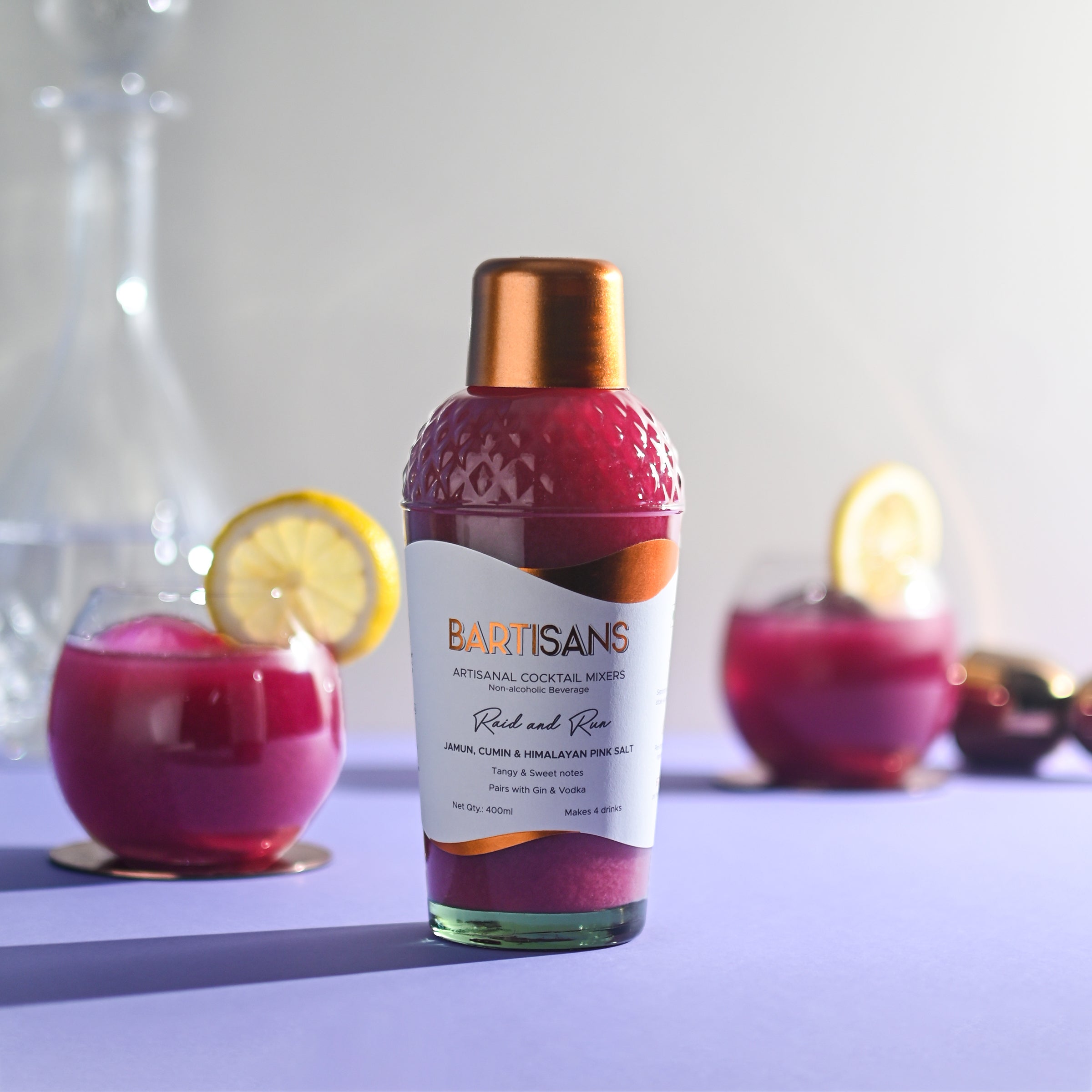 Nothing says childhood mischief like shaking jamun trees and dodging the guard! Raid & Run is a bold blend of sweet and sour jamun with a hint of savory jeera, capturing the taste of victory in every sip. The burst of tangy fruit and warm spice lingers, tempting you to go back for more!