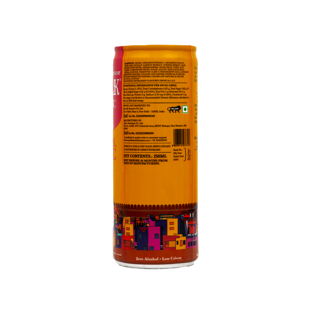 A distinct blend of classic Indian dry gin celebrating the traditional Old Delhi flavours, handcrafted in small batches with natural plant-based ingredients. Authentic Indian herbal flavours marked with juniper berries and cinnamon. Woody notes fill the top-palate while cardamom, rose water extract, ashwagandha and monk fruit add to the lovely flavour. The added fennel with a hint of saffron delivers a generous aromatic finish.
