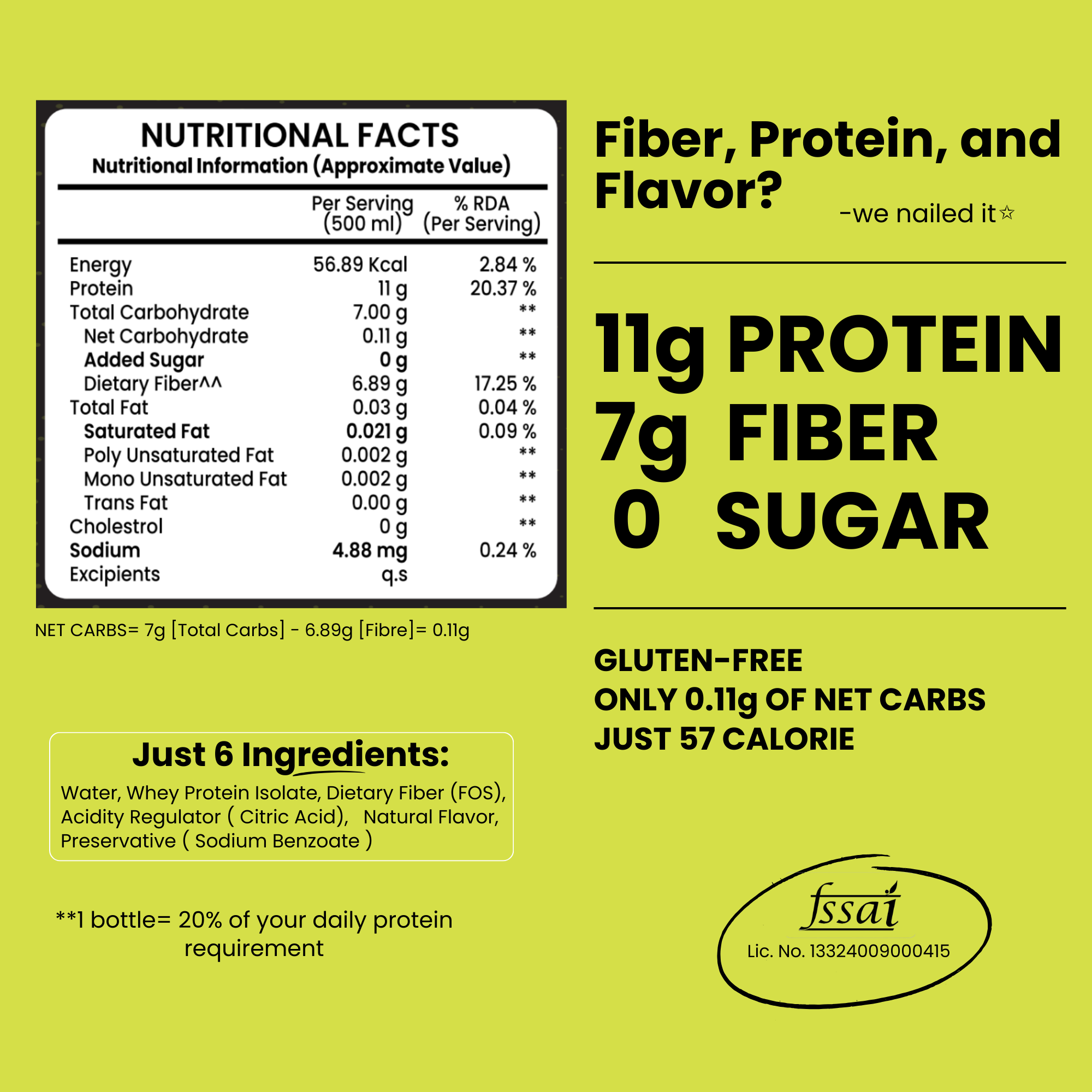 You’re rushing out the door—gym bag in one hand, laptop in the other and breakfast? Who has the time? Enter Green Apple Glint: 11g of protein, only 56.89 calories, and zero sugar to keep you powered up without slowing you down. With no artificial flavors or colors, it’s like biting into a crisp apple, but way more convenient. Grab it, sip it, and conquer your day- because protein on the go has never looked this good.