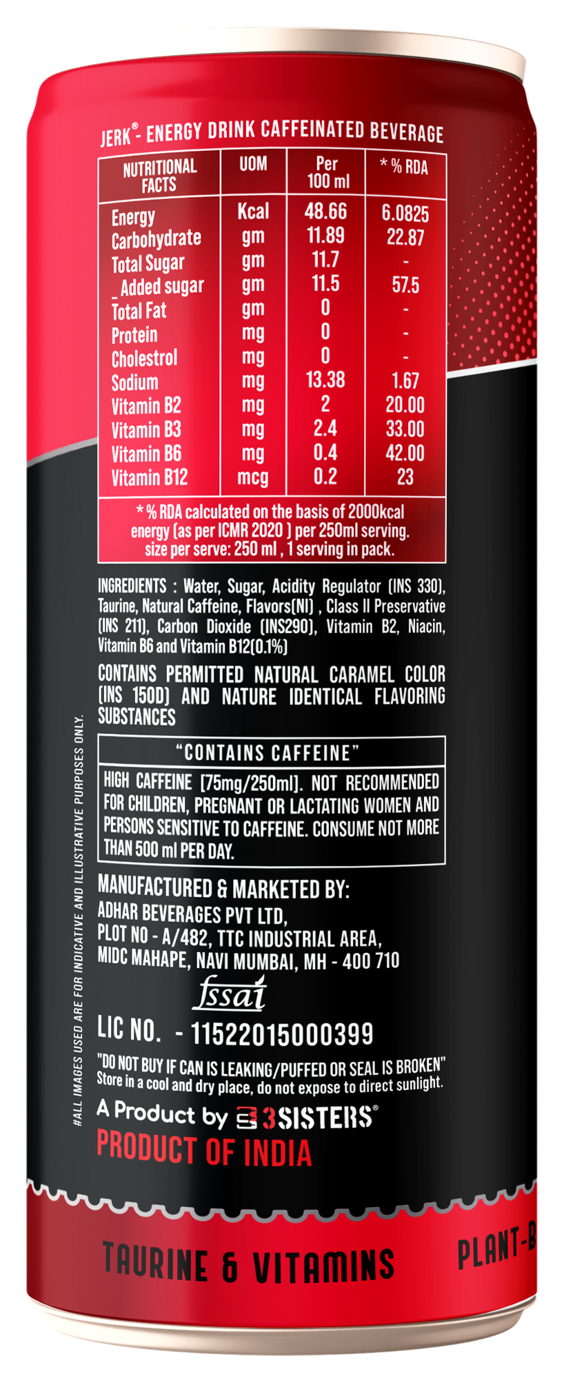 Introducing Jerk Energy Drink, the electrifying boost you've been waiting for! Unleash your full potential and conquer every challenge that comes your way. Packed with invigorating caffeine and revitalizing taurine, Jerk will ignite your senses and fuel your drive, propelling you to new heights of performance and focus. What makes Jerk different is that it doesn’t just fuel your fire but also nourishes your body. Fortified with a powerhouse blend of Vitamin B3, B6, B12, and vital minerals, every sip replenishes your body, so that you’re always on top of the game.
