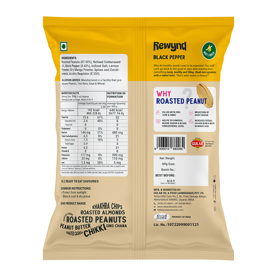 Ignite your taste buds with Rewynd's Black Pepper Peanuts! These perfectly seasoned treats offer a tantalizing blend of spice and crunch. Indulge in the bold flavor and addictive heat with every bite. Get ready to elevate your snacking experience with our irresistible Black Pepper Peanuts!