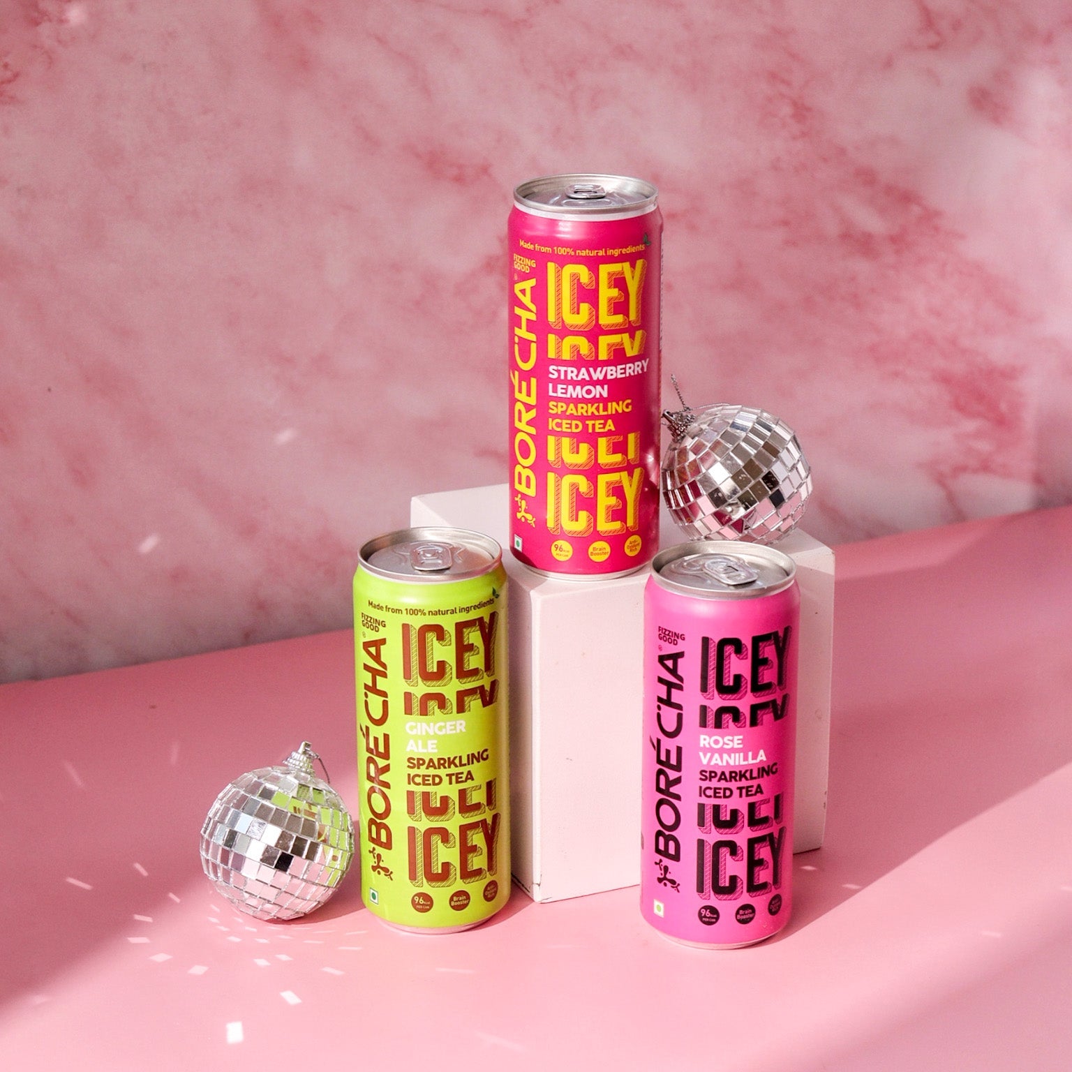 ICEY Sparkling Iced Tea Threesome Pack (Ginger Ale + Rose Vanilla + Strawberry Lemon)