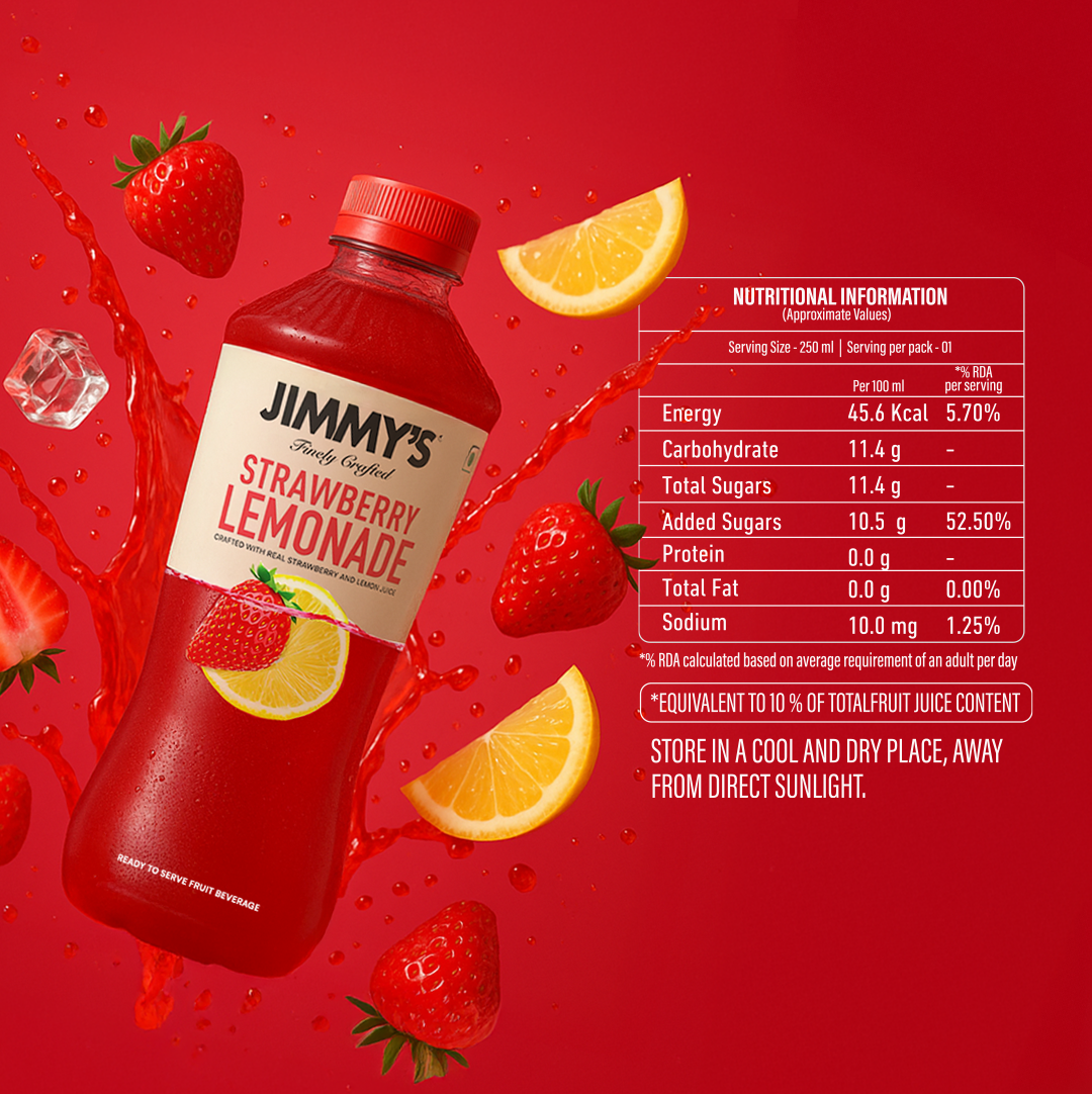 Italian Strawberries, crafted with sweet Italian Strawberries and zesty Indian lime, High with antioxidants, and loaded with Vitamin C, Lightly sweetened, and free from artificial colours or flavour, Refreshing experience, whether you're lounging on a summer afternoon or grabbing a quick thirst-quencher on the go Serve chilled, for a full flavour blast.
