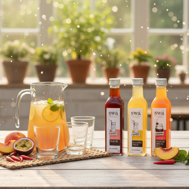 Swa's Tropical Heat Pack consisting of Pineapple Bird Eye Chilli, Peach Tea, and Passionfruit Tea. (One Each)