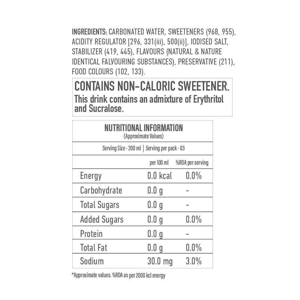 A refreshing Green Apple fizzy drink finely crafted with Zero Sugar and Zero Calories. Perfect for daily drinking. Goes great...