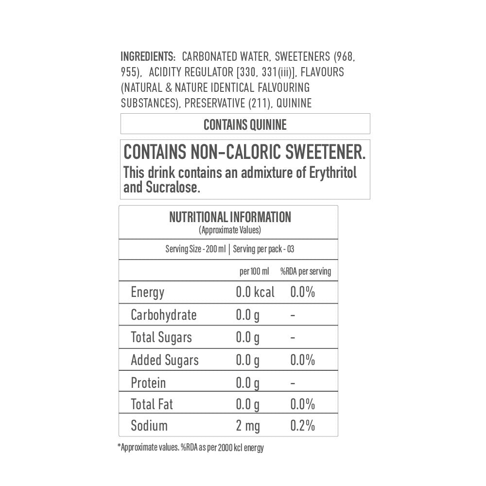 A refreshing Lime & Lemon fizzy drink finely crafted with Zero Sugar and Zero Calories. Perfect for daily drinking. Goes great with food and as a guilt free mixer. A great alternative to soft drinks and colas. Contains no Aspartame.
